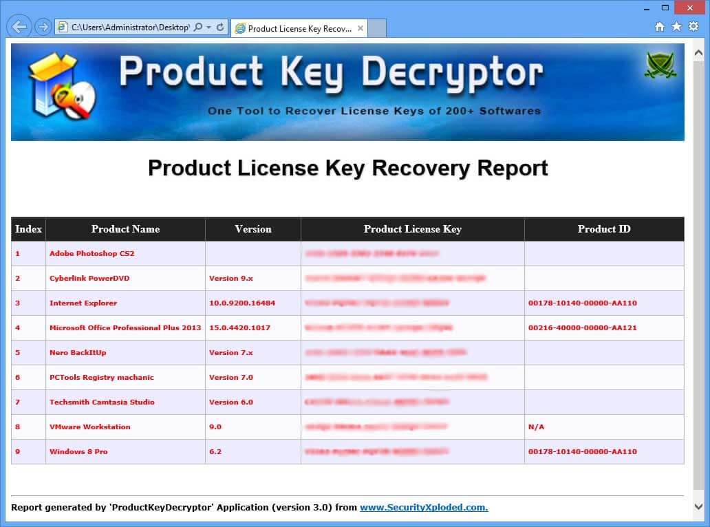 Product Key Decryptor’ works on both 32 bit and 64 bit systems, starting from Windows XP to Windows 8. It is software with top quality and an attractive GUI interface. Also, it is updated regularly to work with the latest version of Windows.
